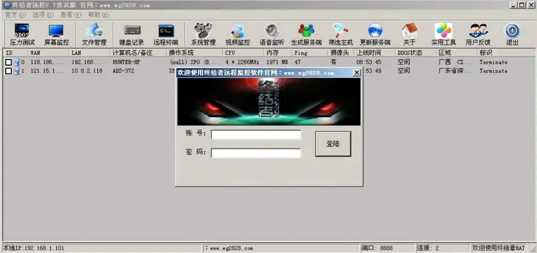 但是!!注意,但是??!遠程控制如果增加了DDOS功能就會變的不穩(wěn)定,免殺難度增大,這也是終結(jié)者最后被用戶放棄的原因。DDOS是攻擊用的,會占用用戶的網(wǎng)速,不停的對外發(fā)包攻擊,而遠程控制最重要的就是穩(wěn)定。所以結(jié)果就是終結(jié)者邊攻擊邊掉線。加上終結(jié)者作者在木馬中加入了后門,所有用戶的肉雞都被終結(jié)者作者所控制,最后就臭大街了。不過這都不是最終影響原因,后來國家打黑,終結(jié)者作者就被抓了。惡意販賣終結(jié)者的中間人和惡意利用終結(jié)者去搞黑客的用戶也抓了幾個。終結(jié)者涉案金額當時大約二百多萬,在當時來看也算不小數(shù)字了?,F(xiàn)在搜索出來的也都是十分古老的版本,黑客軟件都被殺,你不好說哪個里面有后門。要么就是掛羊頭賣Ghost的。Ghost也沒有官網(wǎng),不用信這套了。你們仔細看看發(fā)布的終結(jié)者遠控所謂官網(wǎng),會發(fā)現(xiàn)都是不一樣的。。購買QQ也都不一樣,完全就是個坑。被殺了找誰更新?說實在的也沒用,被殺了再更新,有啥用?