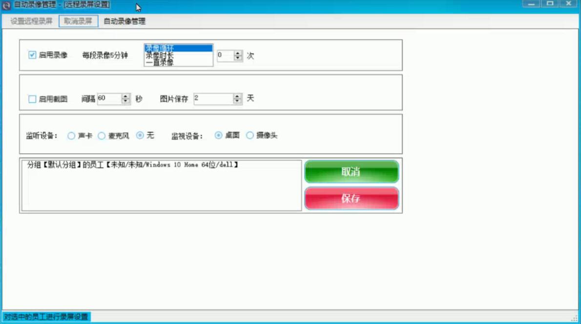 后臺(tái)自動(dòng)錄像演示(不在員工端儲(chǔ)存) 您的瀏覽器不能使用最新的視頻播放方式呢 企業(yè)版后臺(tái)自動(dòng)錄像功能展示。每5分鐘一段,方便回看,自動(dòng)棄幀,可自動(dòng)截圖,可選是否帶聲卡或麥克風(fēng)錄制!不在員工電腦儲(chǔ)存,不占用員工電腦空間,實(shí)時(shí)傳輸給經(jīng)理端。 自動(dòng)錄制視頻自動(dòng)截圖