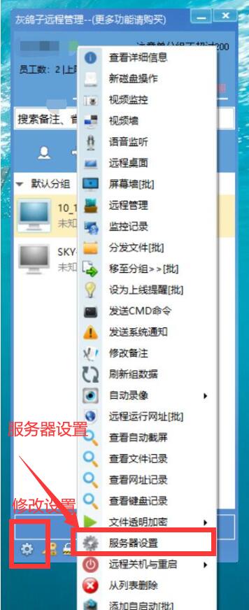 1、遠程控制控制服務(wù)器白屏是因為服務(wù)器默認沒有顯示器。需要選中在線列表中的服務(wù)器,右鍵,找到服務(wù)器設(shè)置。如果設(shè)置錯誤,可在灰鴿子控制面板中找到服務(wù)器設(shè)置列表,將錯誤設(shè)置刪除。注意:普通家用有顯示器的電腦不要進行服務(wù)器設(shè)置!如果您把普通電腦做了服務(wù)器設(shè)置,或者服務(wù)器密碼錯誤也配圖了 右上角小齒輪是控制面板,自行刪除錯誤配置即可。(如果版本更換,自己多找找,不難。)
