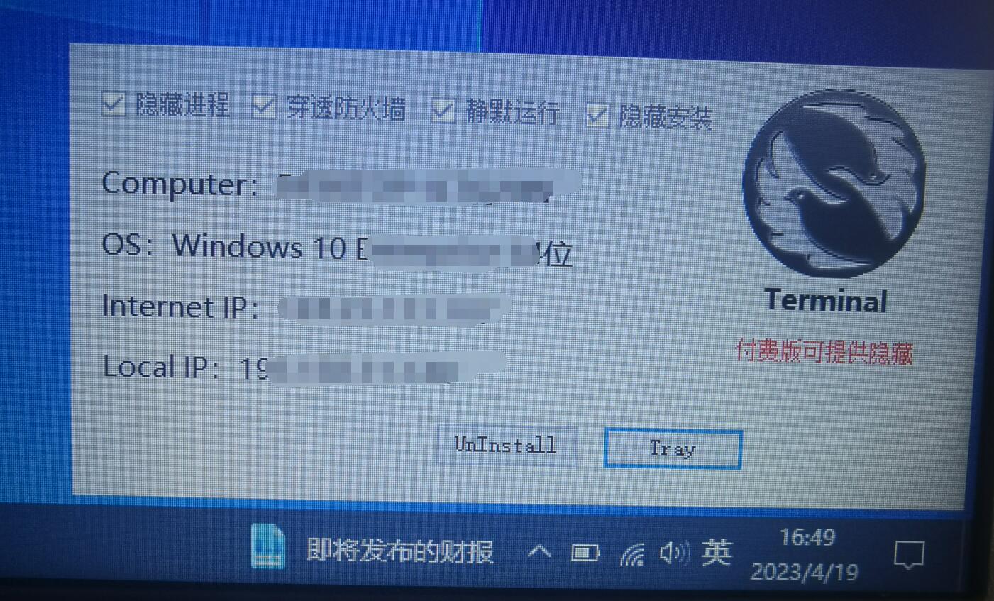 專業(yè)版起無被控提醒,可以隱藏托盤,隱蔽管控【需企業(yè)身份認證】