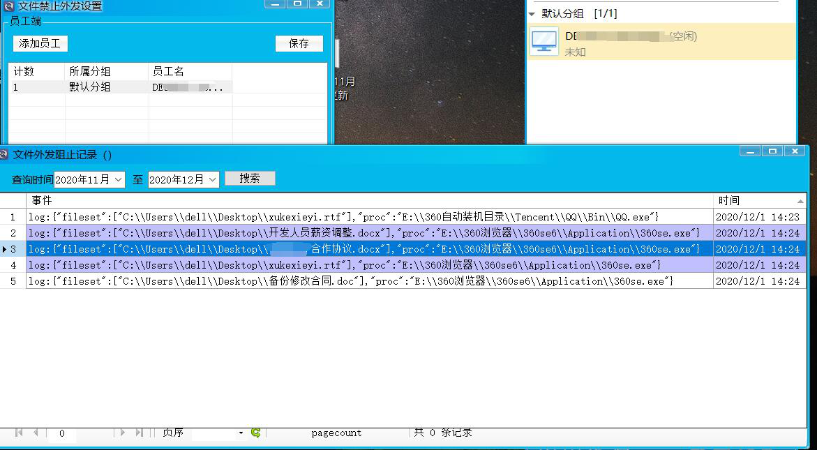 如上圖所示,員工訪問(wèn)了什么網(wǎng)址,搜過(guò)什么關(guān)鍵詞,全部被準(zhǔn)確記錄。下圖為敏感聊天審計(jì),如發(fā)現(xiàn)員工觸發(fā)敏感聊天,會(huì)立即報(bào)警提醒管理端!比如,設(shè)置“回扣”兩個(gè)字,當(dāng)員工用聊天軟件聊到回扣時(shí),不管這個(gè)詞在哪里,都會(huì)將該聊天整條內(nèi)容記錄并提醒管理員!