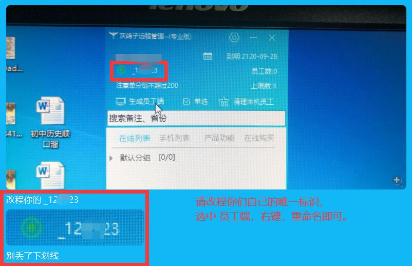 直接選擇員工端,右鍵,重命名為您自己的唯一標(biāo)識(shí)。為了防止用戶擅自安裝造成的“無辜被安裝”灰鴿子。故不修改唯一標(biāo)識(shí)的員工端是無法運(yùn)行的。