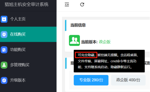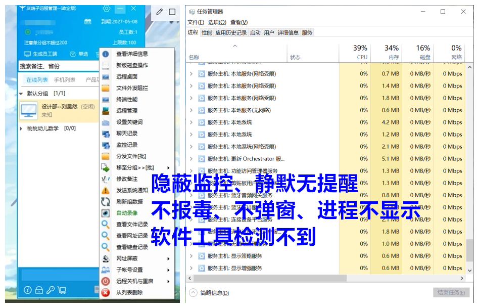 這個功能又叫無痕遠(yuǎn)程或者靜默監(jiān)管,是現(xiàn)在遠(yuǎn)程控制軟件的核心收費功能。沒錯,遠(yuǎn)程控制軟件發(fā)展到今天已經(jīng)可以悄無聲息的進行遠(yuǎn)程控制了,但是大家也別害怕,這個功能一般是企業(yè)在用。用在管理員工的電腦或者企業(yè)信息安全防護上。個人用戶的話基本只有教培機構(gòu)線上監(jiān)考和寶媽監(jiān)督孩子上網(wǎng)在用。