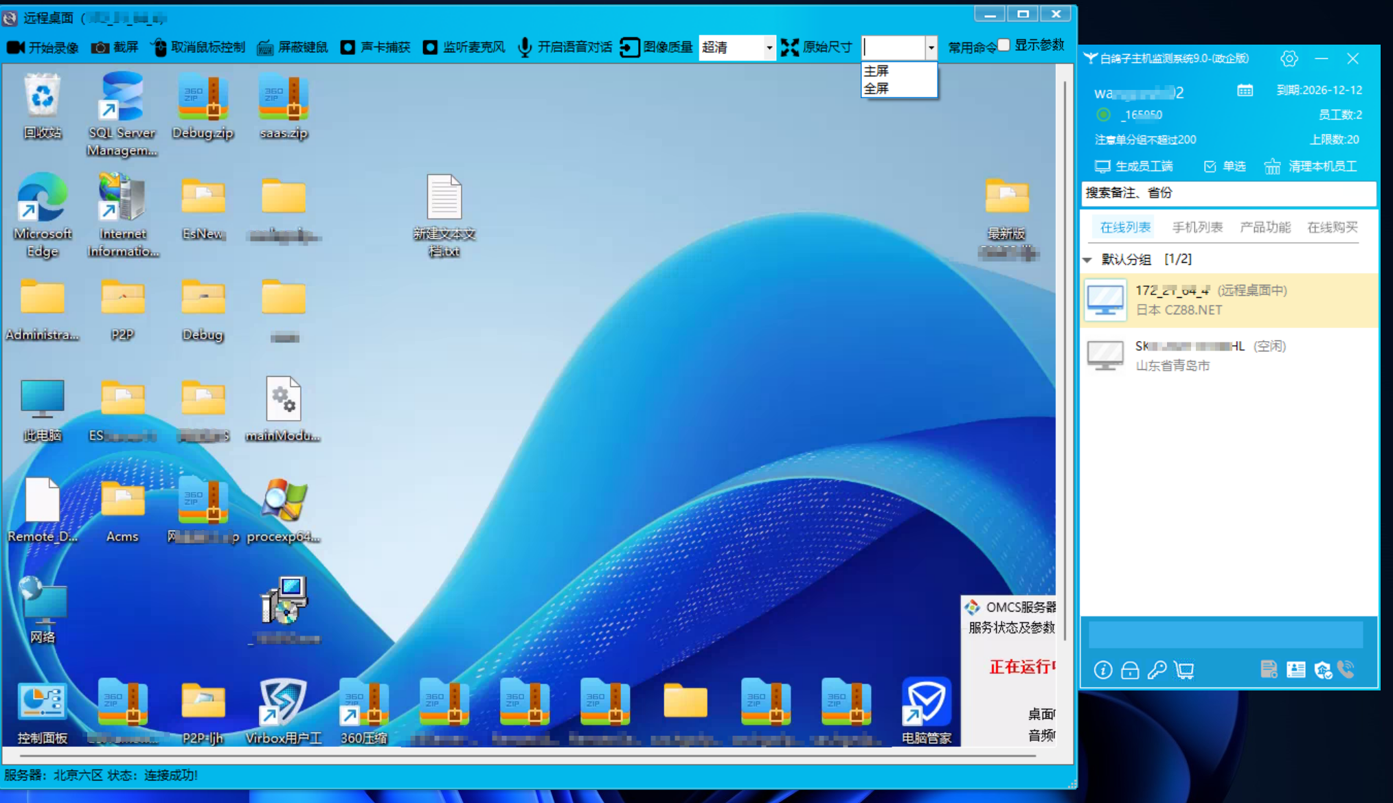 建立連接:在主控端軟件中,將生成的被控端安裝到目標電腦。看到在線列表中的被控電腦之后右鍵即可操作,遠程桌面就會實時顯示在你的屏幕上。