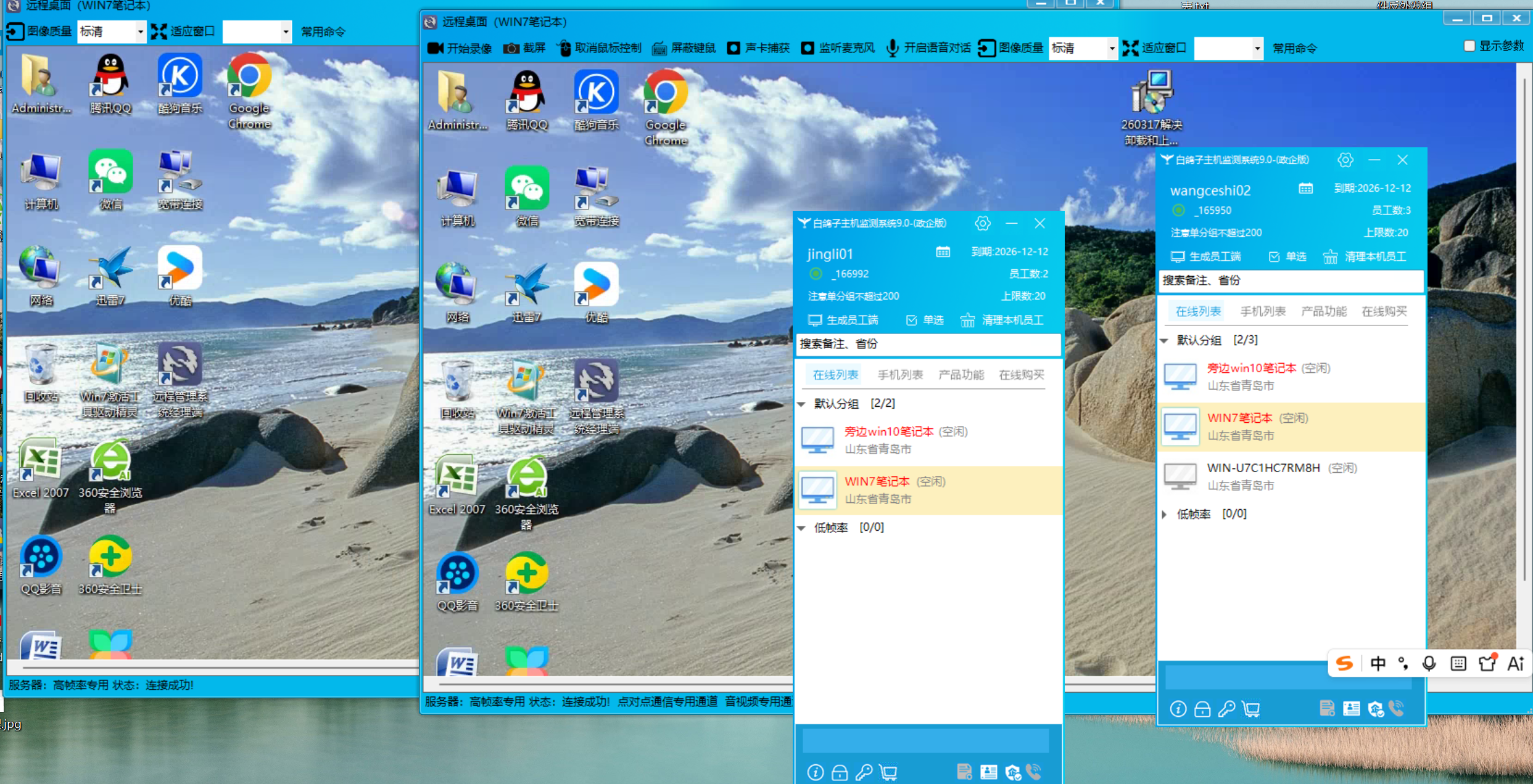 除了多對一、多對多的權(quán)限分享機(jī)制,灰鴿子還提供“屏幕墻”功能,主賬號可在同一窗口內(nèi)同時(shí)查看多臺被控設(shè)備的實(shí)時(shí)桌面,實(shí)現(xiàn)一對多集中監(jiān)控。無論是實(shí)時(shí)了解團(tuán)隊(duì)工作狀態(tài),還是遠(yuǎn)程巡檢機(jī)房設(shè)備,都能一目了然。