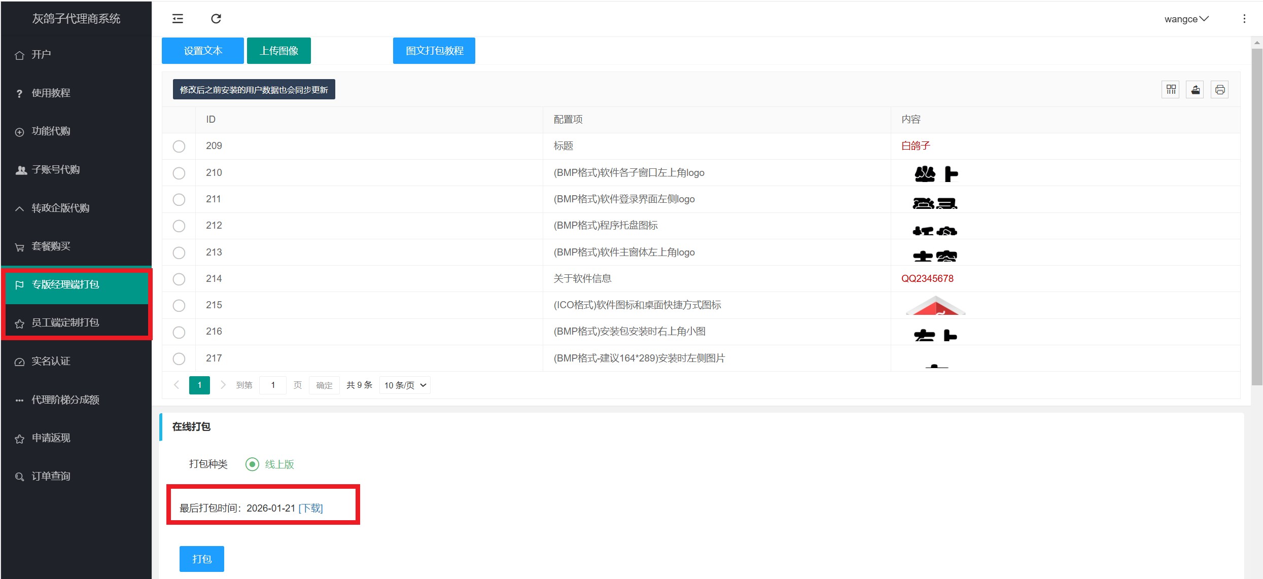所有付費(fèi)用戶(hù),已經(jīng)都擁有代理資質(zhì)。且擁有專(zhuān)版經(jīng)理端打包能力。請(qǐng)登錄自己灰鴿子賬號(hào)即可。