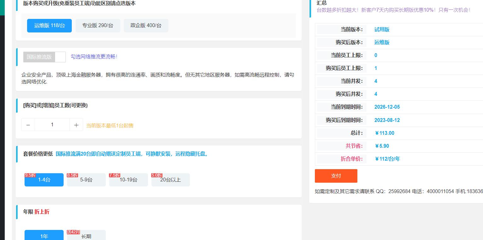 最后一個(gè)VNC,跟灰鴿子類似是老牌產(chǎn)品,這個(gè)價(jià)格是美元,折合下來一年最低274,按并發(fā)算的1375元??鐕灰坠烙?jì)還需要額外手續(xù)費(fèi)。