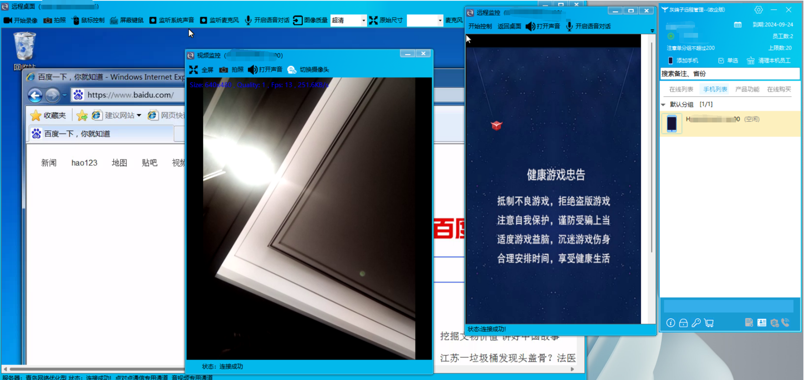 電腦桌面監(jiān)控和視頻監(jiān)控同時進行,支持邊遠程監(jiān)控邊對桌面或視頻進行錄像和拍照。